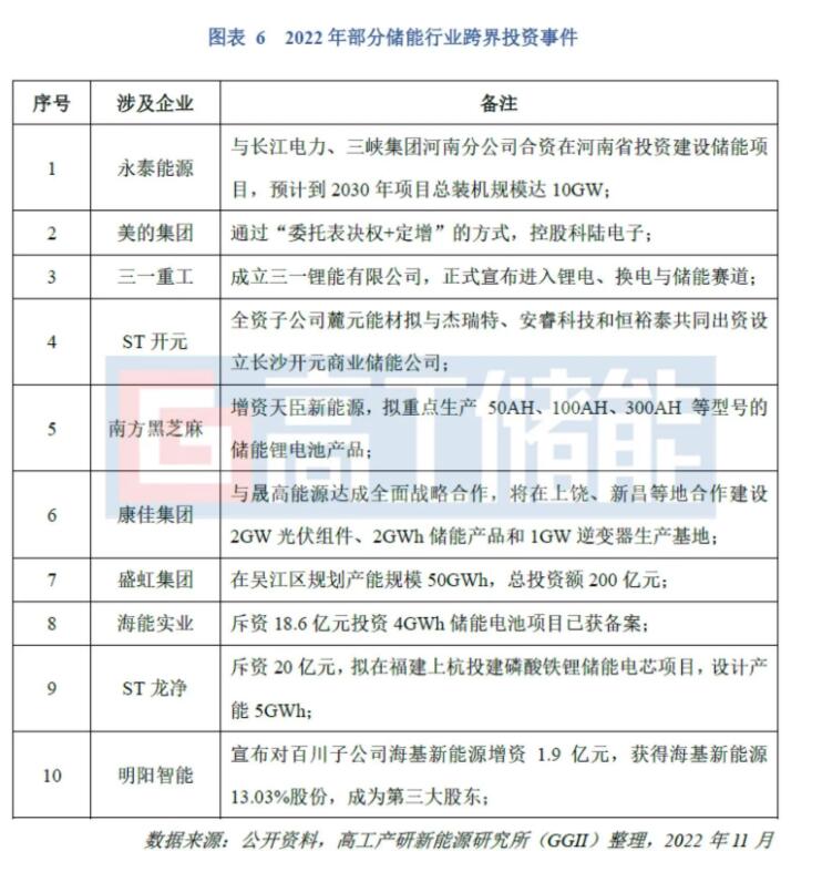 此外,據(jù)不完全統(tǒng)計,2022年跨界儲能上市公司包括永泰能源、美的集團、三一重工、ST開元、海能實業(yè)、ST龍凈、明陽智能等。