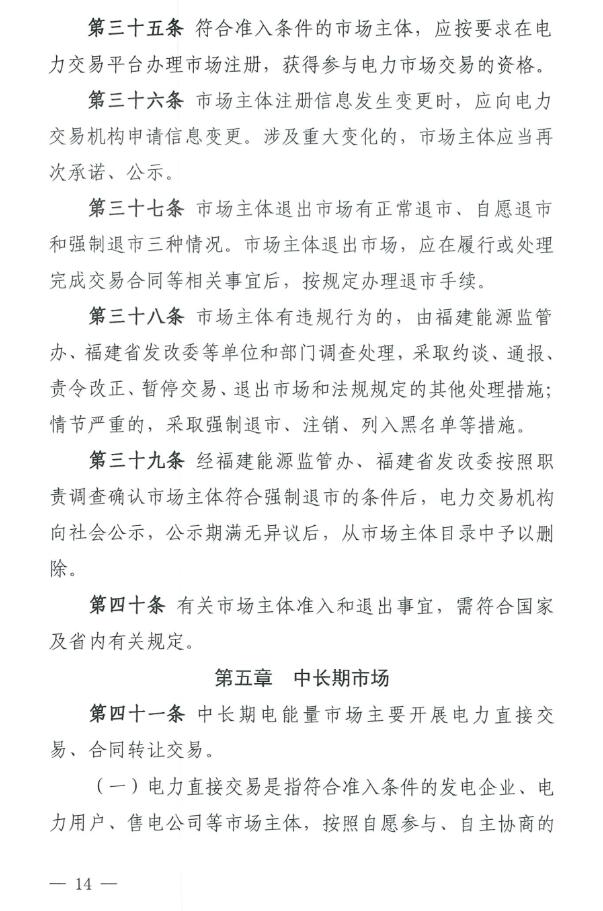《福建電力市場運營基本規(guī)則(試行)》原文如下: