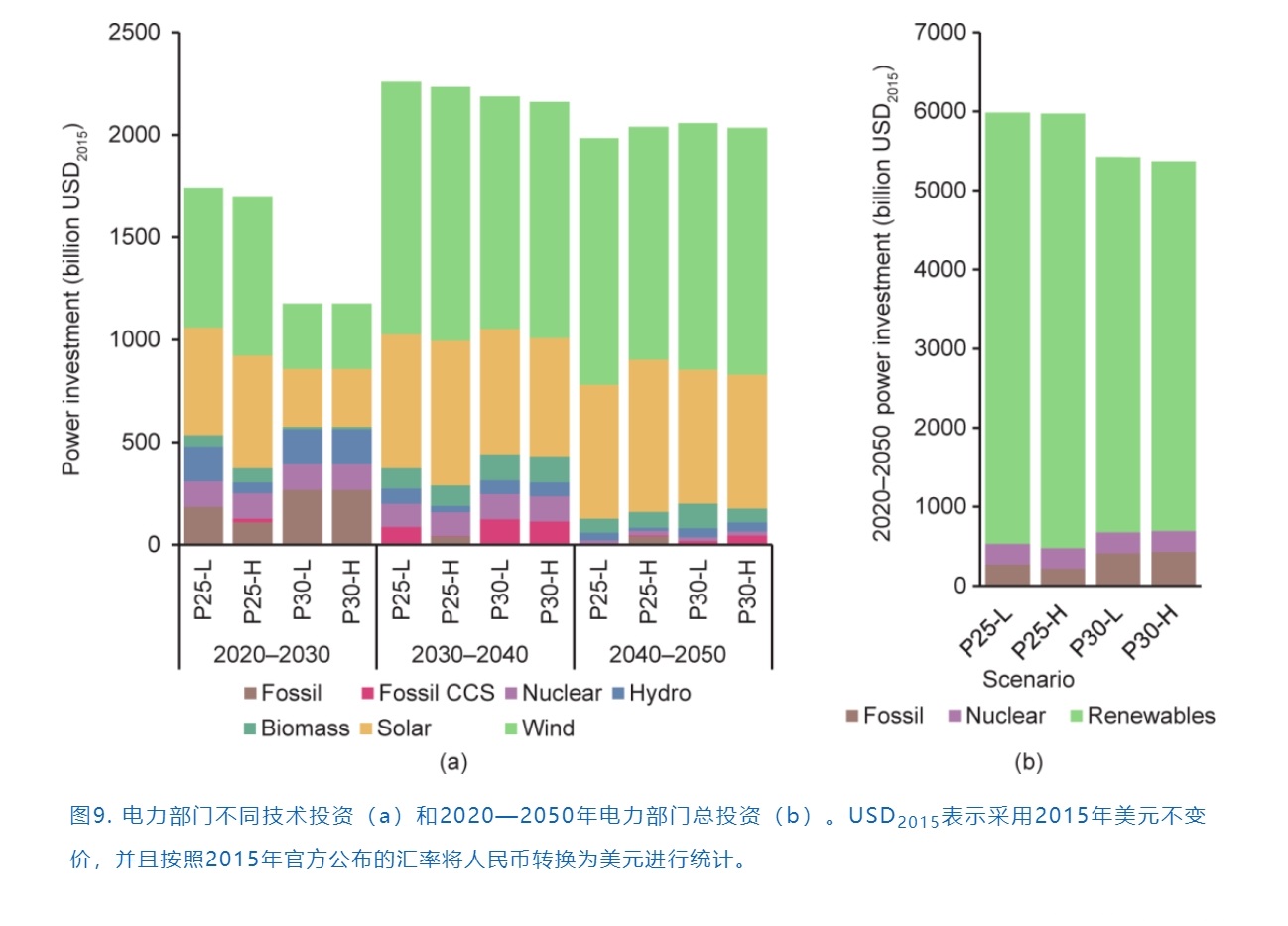 (2)中國需要在電力部門快速推廣可再生能源取代化石能源,同時由于可再生能源的高滲透率給電力系統(tǒng)的供需匹配帶來挑戰(zhàn),中國應當重視儲能設施的配套發(fā)展。