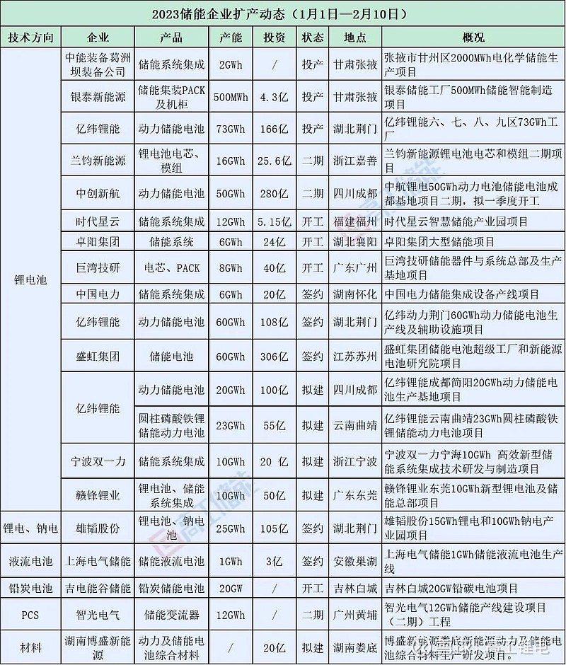 2023開年以來,儲能行業(yè)迎來新一輪擴產(chǎn)高峰,產(chǎn)業(yè)鏈上下游近二十家企業(yè)宣布最新儲能項目建設規(guī)劃。同時,2022年落地開工的多項儲能產(chǎn)線建設項目,有望在一季度陸續(xù)迎來投產(chǎn),貫穿2022全年的電芯供應緊張局面有望得到緩解。