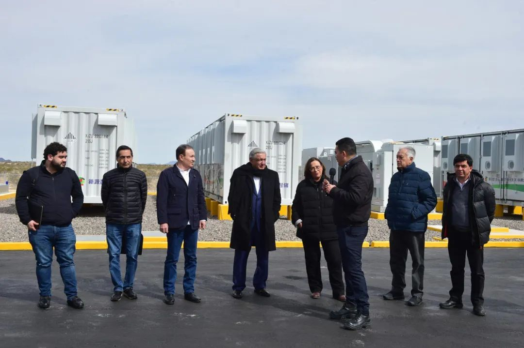 ▲墨西哥合眾國總統(tǒng)安德烈斯·曼努埃爾·洛佩斯·奧夫拉多爾(左四)現(xiàn)場視察光伏電站配套儲(chǔ)能工程