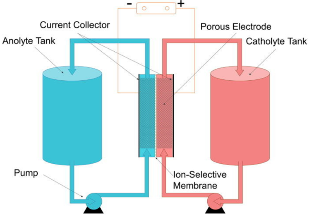 液流電池是正負(fù)極電解液分開,各自循環(huán)的一種高性能蓄電池,具有容量高、使用領(lǐng)域(環(huán)境)廣、循環(huán)使用壽命長的特點(diǎn)。根據(jù)電極活性物質(zhì)的不同可分為鐵鉻、全釩、鋅溴等,鐵鉻和全釩兩種為目前主流商用方向。