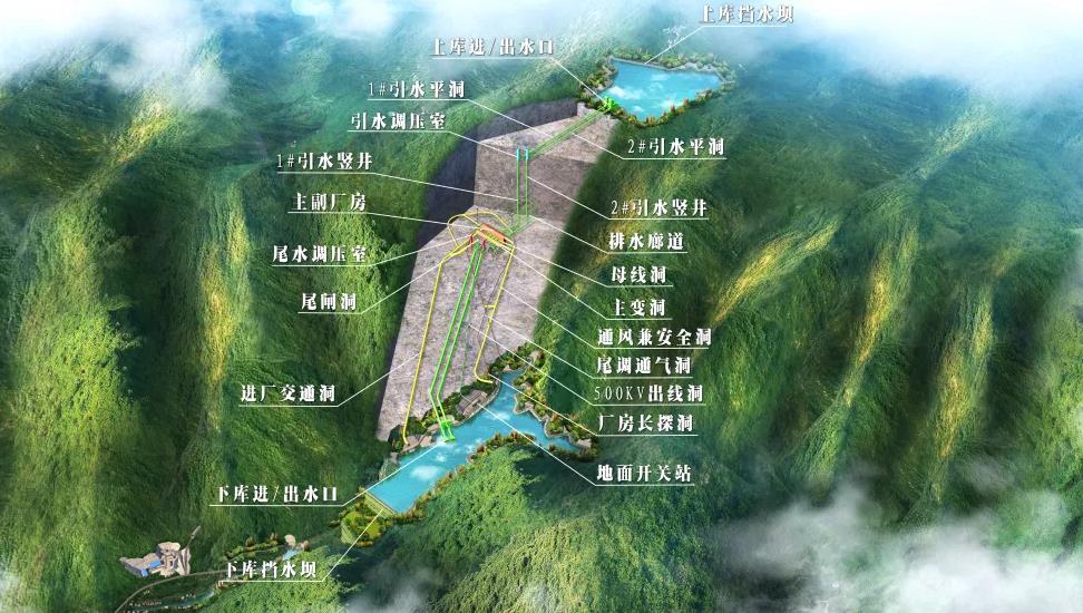 浙江松陽抽水蓄能電站位于麗水市松陽縣玉巖鎮(zhèn)、竹源鄉(xiāng)境內(nèi),是浙江省重大能源項目,已列入《抽水蓄能中長期發(fā)展規(guī)劃(2021-2035年)》“十四五”重點實施項目,是松陽歷史上投資最大項目,工程總投資約88.2億元,主要由上水庫樞紐、下水庫樞紐、輸水系統(tǒng)、地下廠房、地面開關(guān)站、場內(nèi)道路及附屬設(shè)施等組成。電站為日調(diào)節(jié)純抽水蓄能電站,安裝4臺35萬千瓦可逆式水泵水輪發(fā)電機組,總裝機容量為140萬千瓦,年發(fā)電量為14億千瓦時。