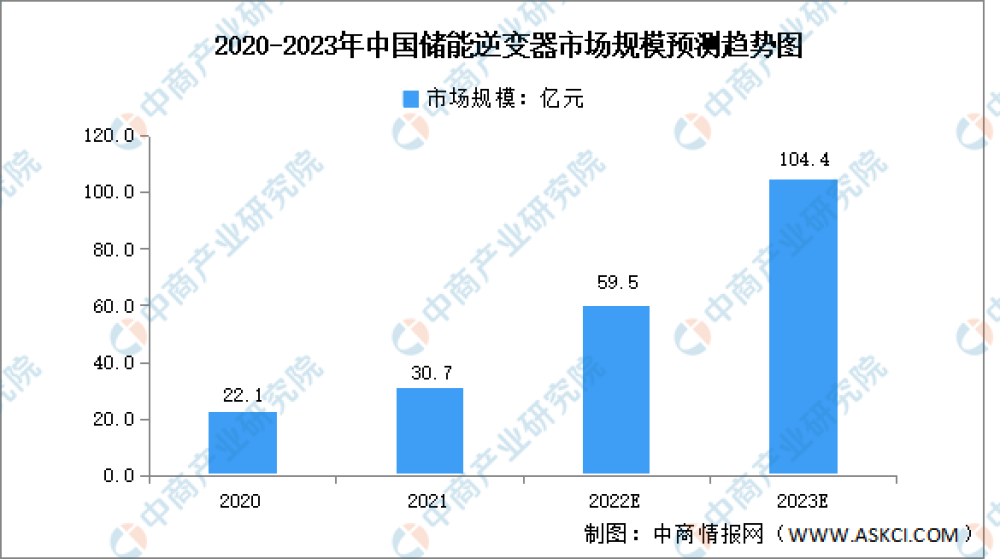 近年來,我國儲能市場顯現(xiàn)出高速增長態(tài)勢,催生對于儲能逆變器的巨大需求,儲能逆變器市場前景廣闊。數(shù)據(jù)顯示,2020年我國儲能逆變器市場規(guī)模達(dá)22.1億元,2021年進(jìn)一步增長至30.7億元,同比增長,預(yù)計(jì)2023年我國儲能逆變器市場規(guī)模將達(dá)104.4億元。