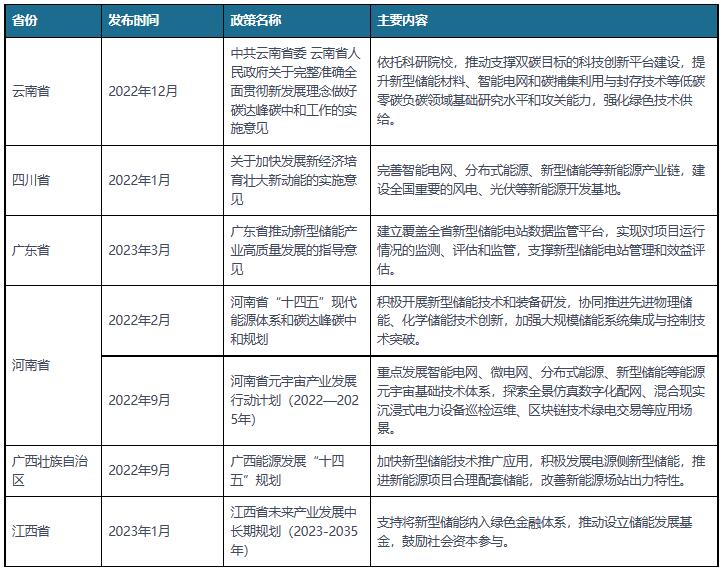 部分省市新型儲(chǔ)能行業(yè)相關(guān)政策