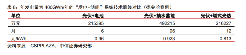 同時(shí),考慮到國(guó)內(nèi)電力系統(tǒng)轉(zhuǎn)型同時(shí)從“大基地+大電網(wǎng)”和“分散式電源+分布式智 能電網(wǎng)”雙線并行,兩種模式下產(chǎn)生了當(dāng)下不同的技術(shù)路線、解決方案偏好。前者重點(diǎn)在 國(guó)內(nèi)“十四五”期間約 450GW 風(fēng)光大基地的基礎(chǔ)上,配置靈活性資源;扣除前兩批大基 地中較多配置在原有大基地及特高壓外輸通道周圍,剩余風(fēng)光大基地結(jié)合目前已落地項(xiàng)目 來(lái)看,主靈活性資源一般會(huì)結(jié)合當(dāng)?shù)刭Y源條件選擇靈活性火電或抽水蓄能電站,并補(bǔ)充一 定的鋰電儲(chǔ)能電站及光熱(熔鹽儲(chǔ)熱)電站。后者考慮分布式系統(tǒng)對(duì)靈活布點(diǎn)、項(xiàng)目規(guī)模 的需求差異,多以電化學(xué)儲(chǔ)能電站為主。預(yù)計(jì)在現(xiàn)行政策引導(dǎo)及項(xiàng)目?jī)?chǔ)備背景下,“十四 五”期間光熱電站(熔鹽儲(chǔ)能)新增裝機(jī)規(guī)模 4-5GW,對(duì)應(yīng) EPC 造價(jià)空間約 640-800 億 元,在“十四五”期間國(guó)內(nèi)新增儲(chǔ)能裝機(jī)中占比約 3-4%。