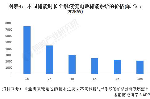 綜合考慮殘值后,儲能時長分別為 4h、10h 的全釩液流電池系統(tǒng)實(shí)際成本僅為 1875 元 /kWh、1020 元 /kWh。因此,從生命周期角度來講,全釩液流電池具有性價比高、經(jīng)濟(jì)性好、環(huán)境負(fù)荷低的優(yōu)勢。