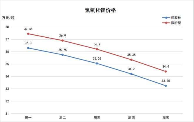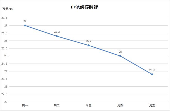 上周,3月27日-3月31日,鋰價(jià)繼續(xù)下跌。其中,電池級碳酸鋰價(jià)格下探至23.8萬元/噸,氫氧化鋰價(jià)格低至33.25萬元/噸,六氟磷酸鋰低至10.15萬元/噸。