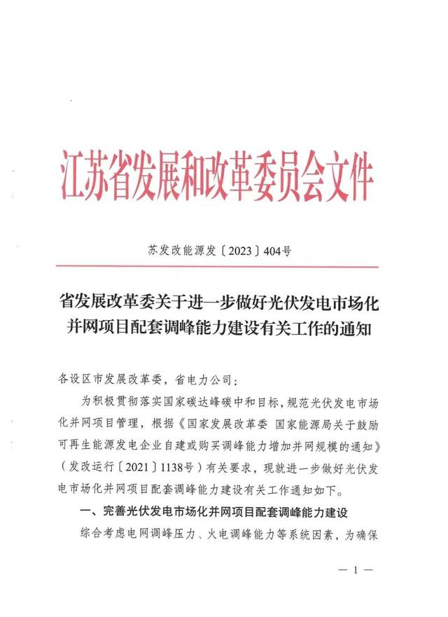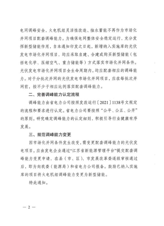 4月17日,江蘇省發(fā)展改革委發(fā)布《關(guān)于進一步做好光伏發(fā)電市場化并網(wǎng)項目配套調(diào)峰能力建設(shè)有關(guān)工作的通知》(文件原文附后),文件提出: