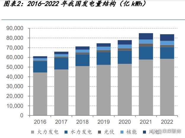 火力發(fā)電是我國碳排放的主要來源。中國是全球碳排放主要貢獻(xiàn)者,碳排放量常年占 比全球碳排總量的 30%,2021 年碳排放超 199 億噸。從排放結(jié)構(gòu)角度看,電力行業(yè)為 我國碳排放的主要來源,占比超過 42%,幾乎所有碳排放均來自于燃煤發(fā)電,占比高 達(dá) 99%。制造行業(yè)碳排放量其次,占比超 38%,其中 5 大高耗能產(chǎn)業(yè)(石油化工及煉 焦、黑色金屬冶煉、非金屬礦物冶煉、化工、有色金屬冶煉)是重點排放對象,貢獻(xiàn) 國內(nèi)制造行業(yè) 90%的碳排放。交通行業(yè)考慮生產(chǎn)過程的碳排放以及行駛過程中的碳排 放,總碳排放量占比則超 5%。