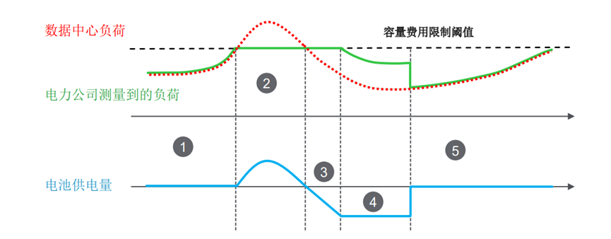 施耐德在發(fā)表的一篇白皮書中提到儲(chǔ)能型UPS 能以非常規(guī)則的方式調(diào)節(jié)電網(wǎng)所測量到的負(fù)荷。如此可以將數(shù)據(jù)中心峰值電力容量需求最小化,使用UPS之前儲(chǔ)存好的電量,避免在用電高峰期支付高價(jià)電費(fèi),降低容量費(fèi)用。