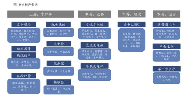 再來拆下充電樁的產(chǎn)業(yè)鏈,充電樁的產(chǎn)業(yè)鏈很簡單,上游是零部件、中游是設(shè)備加工制造,再到下游運(yùn)營環(huán)節(jié)。