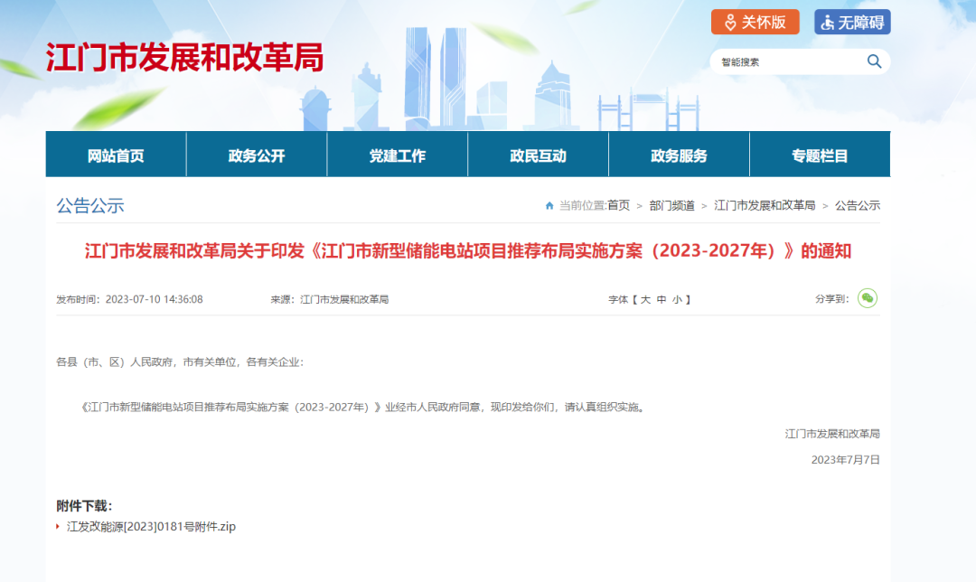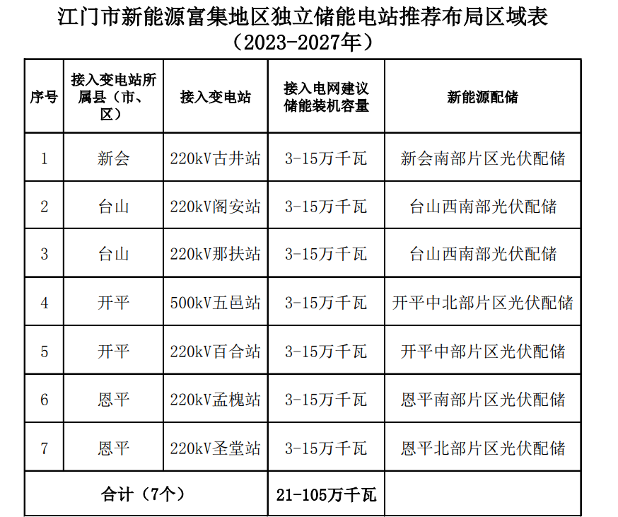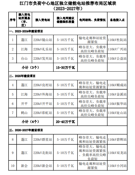 江門發(fā)展改革局印發(fā)《江門市新型儲(chǔ)能電站項(xiàng)目推薦布局實(shí)施方案(2023-2027 年)》(簡(jiǎn)稱:《方案》)。