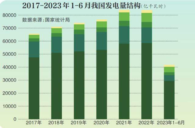 “新能源不僅在外貿(mào)上的表現(xiàn)讓人眼前一亮,在迎峰度夏上的保供表現(xiàn)也是出人意料。”今年上半年我國(guó)水力發(fā)電量較去年同期大幅下降,但是風(fēng)電、太陽能為主的新能源的電力增長(zhǎng)有效彌補(bǔ)了來水偏枯導(dǎo)致的水電發(fā)電量下滑。新能源在迎峰度夏保供上表現(xiàn)非常亮眼,有效地支持了能耗雙控向碳排放雙控轉(zhuǎn)變。