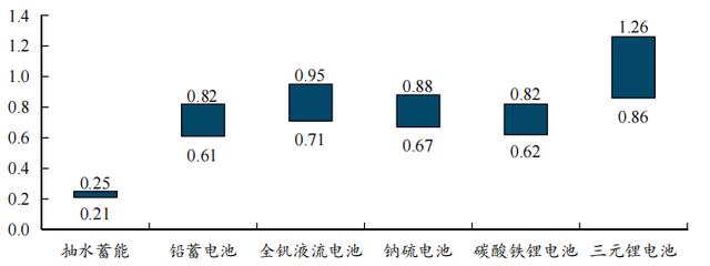 圖:典型儲能技術的度電成本(元/kWh)