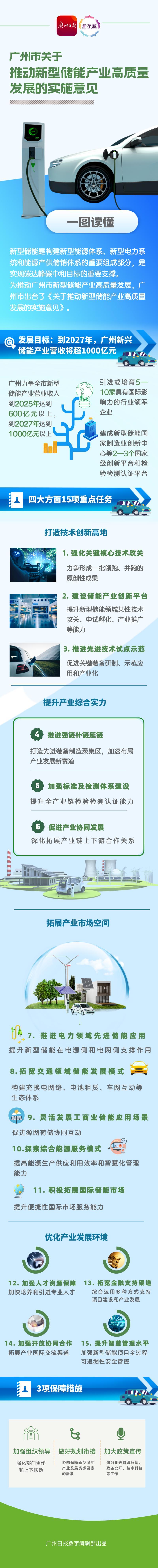 根據(jù)《實(shí)施意見》,到2027年,廣州將力爭(zhēng)全市新型儲(chǔ)能產(chǎn)業(yè)營(yíng)業(yè)收入超過(guò)1000億元。為實(shí)現(xiàn)這一目標(biāo),廣州從四方面提出15項(xiàng)重點(diǎn)任務(wù)。下面帶你一圖讀懂↓