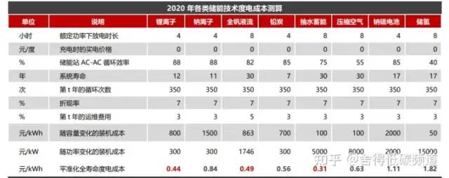 1、從2020 年來(lái)看,各類儲(chǔ)能技術(shù)度電成本的排序從低到高分別是:抽水蓄能<鋰離子電池<全釩液流電池<鉛炭電池<壓縮空氣<鈉離子電池<鈉硫電池<氫儲(chǔ)能。