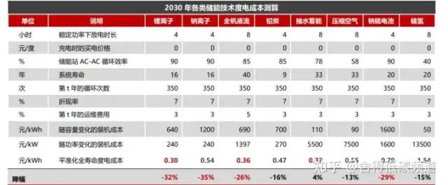 2、到 2030 年,各類儲(chǔ)能技術(shù)的度電成本從低到高排序或依次為:鋰離子電池<抽水蓄能<全釩液流電池<鉛炭電池< 鈉離子電池<壓縮空氣<鈉硫電池<氫儲(chǔ)能。