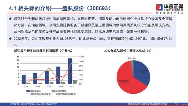 盛弘股份為新能源領(lǐng)域中儲能微網(wǎng)系統(tǒng)、充換電運營、消費及動力電池制造企業(yè)提供核心設(shè)備及全面解決方案。在儲能領(lǐng)域,公司主要提供服務(wù)于新能源靈活應(yīng)用領(lǐng)域的儲能微網(wǎng)系統(tǒng)核心設(shè)備及解決方案,公司新能源電能變換設(shè)備產(chǎn)品主要包括儲能變流器、儲能系統(tǒng)電氣集成、光儲一體機等。 2022年度,公司實現(xiàn)營業(yè)收入15.03億元,同比增長47.16%,實現(xiàn)歸母凈利潤2.24億元,同比增長97.04%。