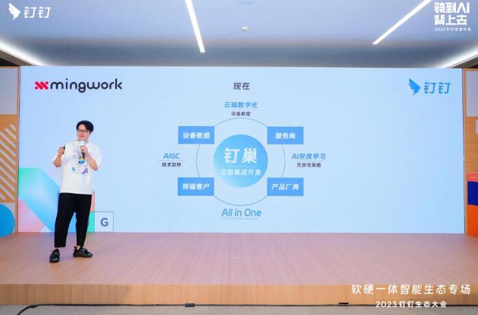 明我的分布式解決方案不僅為用戶提供了硬件服務(wù),還在釘釘平臺(tái)上進(jìn)行了軟件服務(wù)的升級(jí)。相較于傳統(tǒng)的硬件銷(xiāo)售模式,這次的方案體現(xiàn)了數(shù)字化的深度。在釘釘上,用戶無(wú)需再通過(guò)PPT來(lái)了解產(chǎn)品,而是可以通過(guò)在線CAD和數(shù)字展廳與產(chǎn)品互動(dòng)。一旦提出需求,他們就可以看到一個(gè)在線數(shù)字方案。結(jié)合AIGC技術(shù),用戶能夠迅速了解產(chǎn)品的細(xì)節(jié)。