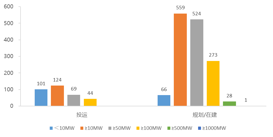 各功率等級(jí)項(xiàng)目數(shù)量分布情況(2023年1-6月份)