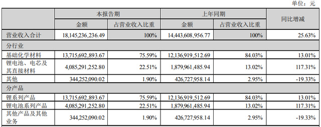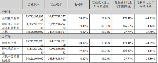 今年上半年,贛鋒鋰業(yè)的鋰電池系列產(chǎn)品營業(yè)收入達(dá)到40.85億元,同比增長117.31%,占比首度突破20%達(dá)到22.5%,毛利率更是增長了4.14個百分點到19.41%,成為贛鋒鋰業(yè)唯一實現(xiàn)毛利率正增長的業(yè)務(wù)。