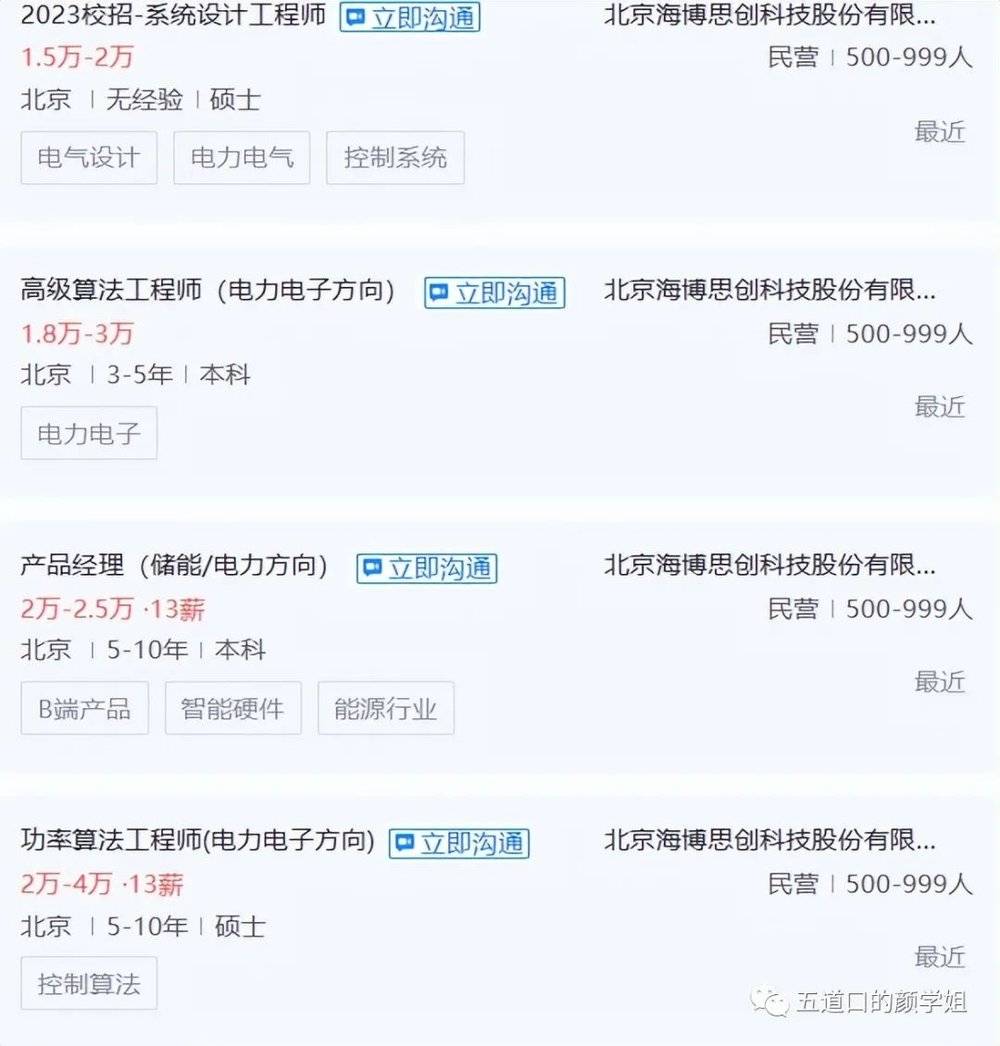 如果要直觀地了解,直接看看相關(guān)企業(yè)招什么樣的人就更清楚。例如海博思創(chuàng),它招聘的大都是電子信息、電氣工程類專業(yè)的人才。