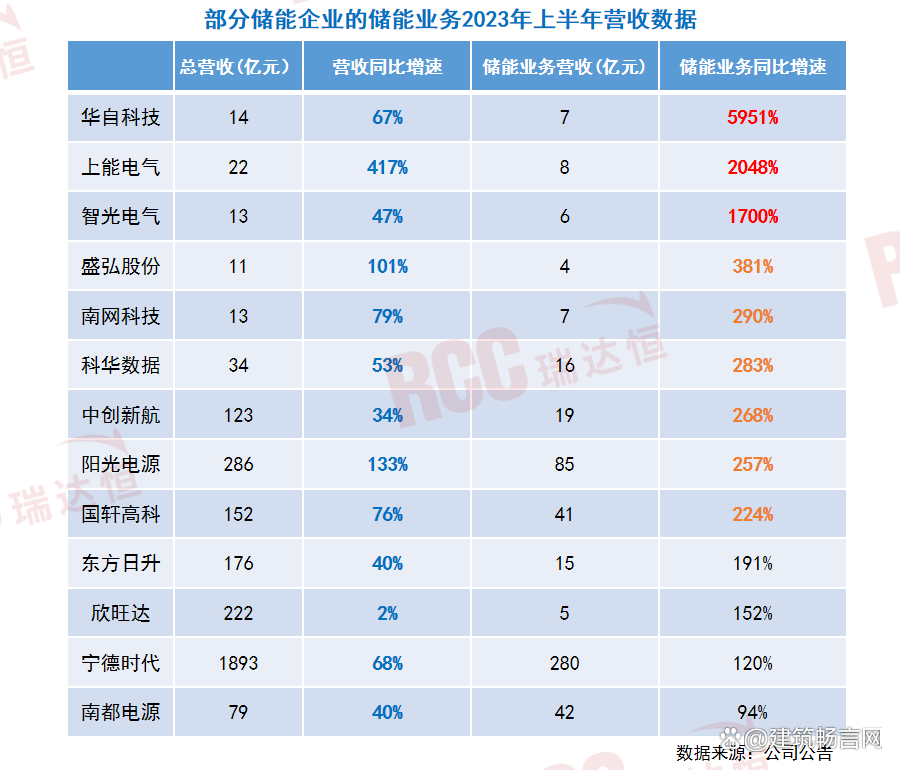 儲(chǔ)能企業(yè)陸續(xù)公布2023年上半年業(yè)績(jī),近7成實(shí)現(xiàn)營(yíng)收正增長(zhǎng),部分企業(yè)迎來(lái)儲(chǔ)能業(yè)績(jī)大爆發(fā)。華自科技、上能電氣、智光電氣儲(chǔ)能業(yè)務(wù)營(yíng)收分別同比增長(zhǎng)5951%、2048%、1700%。
