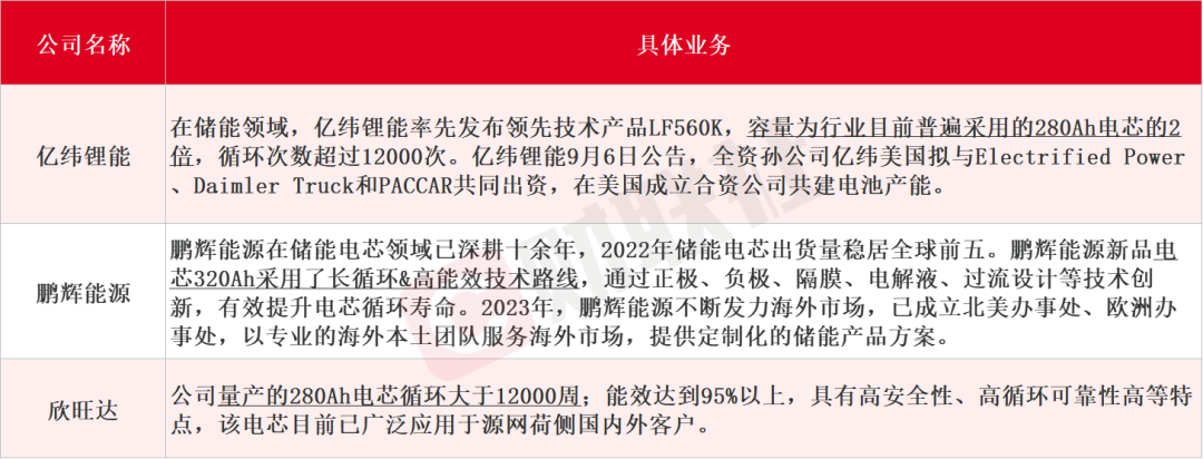 據(jù)財(cái)聯(lián)社不完全整理,出口海外的儲(chǔ)能電芯A股上市公司主要為億緯鋰能、鵬輝能源、欣旺達(dá)等,還包括自研電芯配套戶儲(chǔ)終端產(chǎn)品的企業(yè),如比亞迪、派能科技等。而另一邊,儲(chǔ)能電池出海的風(fēng)吹向了大儲(chǔ),截至目前,已經(jīng)有包括瑞浦蘭鈞、遠(yuǎn)景動(dòng)力、海辰儲(chǔ)能、億緯鋰能等多家企業(yè)獲海外儲(chǔ)能集成商大單,單筆最大訂單已達(dá)10GWh。A股上市公司具體業(yè)務(wù)如下: