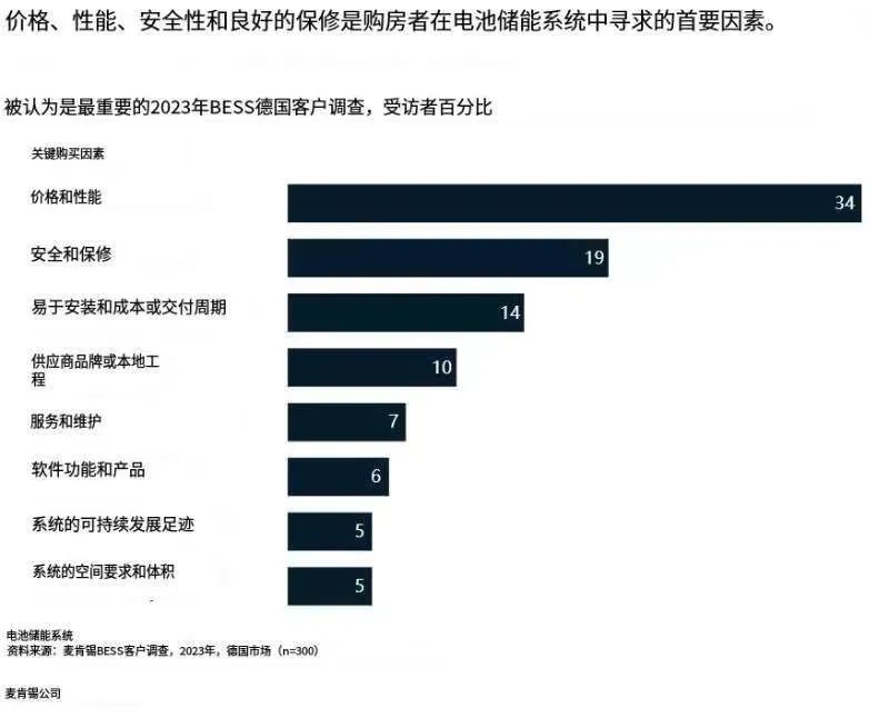 定制產(chǎn)品將幫助住宅客戶實(shí)現(xiàn)自給自足、優(yōu)化自耗和降低峰值功耗等目標(biāo),這意味著該領(lǐng)域?qū)碛懈叩睦麧?。在對替代能源購買的消費(fèi)者調(diào)查中表明,用戶對電化學(xué)儲能產(chǎn)品的興趣將歸結(jié)為幾個因素,首先是價格、安全性和易于安裝等。