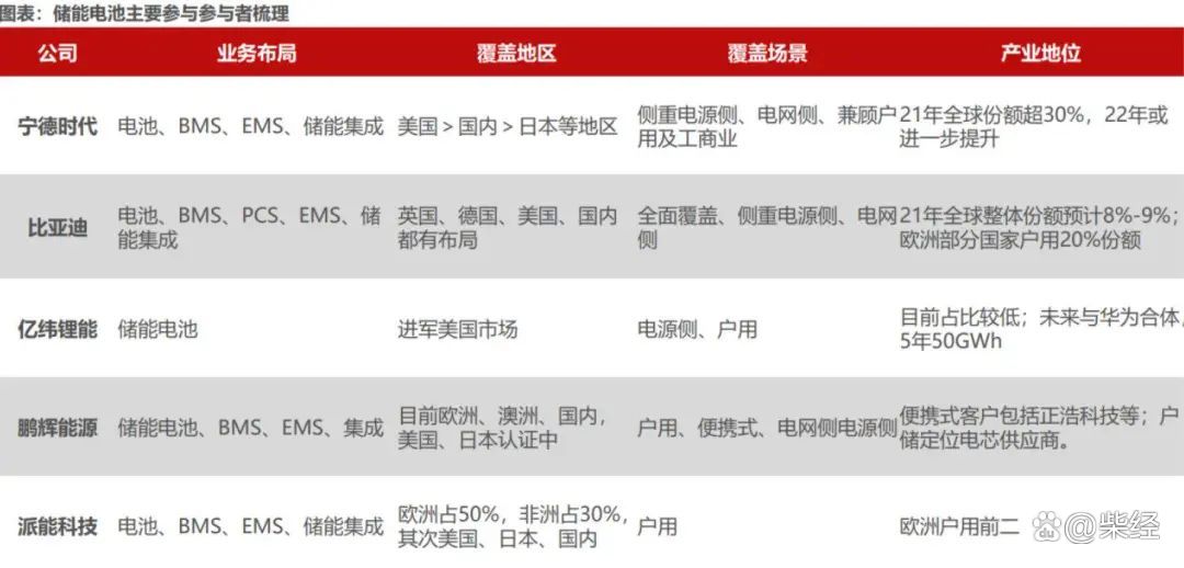 梳理儲(chǔ)能電池:主要為動(dòng)力電池廠參與