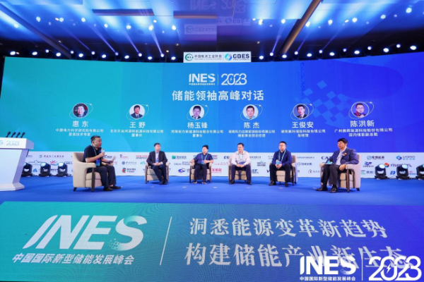 儲能領袖高峰對話環(huán)節(jié)由中國電力科學研究院有限公司首席技術專家、中國電池工業(yè)協(xié)會儲能分會專家委員會主任委員惠東主持,北京天啟鴻源新能源科技有限公司董事長王野、廣州鵬輝能源科技股份有限公司國內(nèi)儲能副總裁陳洪新、河南創(chuàng)力新能源科技股份有限公司董事長楊玉鋒、湖南科力遠新能源股份有限公司儲能事業(yè)部總經(jīng)理陳杰、湖南贏科儲能科技有限公司總經(jīng)理王俊安,分別圍繞主流技術特征、應用場景和商業(yè)模式等角度闡述獨到見解。