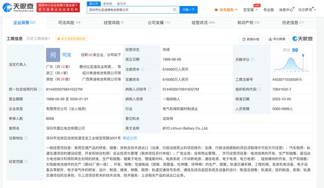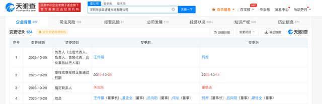 天眼查App顯示,近日,深圳市比亞迪鋰電池有限公司發(fā)生工商變更,王傳福卸任法定代表人、董事長,由何龍接任。
