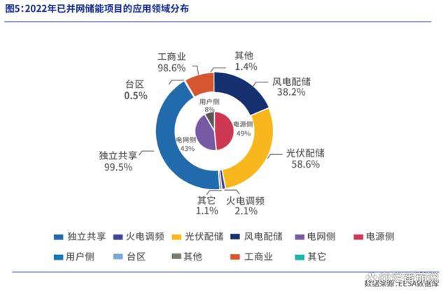 以此來計算,風(fēng)光配儲項目占2022年已并網(wǎng)儲能項目的比例高達(dá)47.4%,規(guī)模比例排第一位。