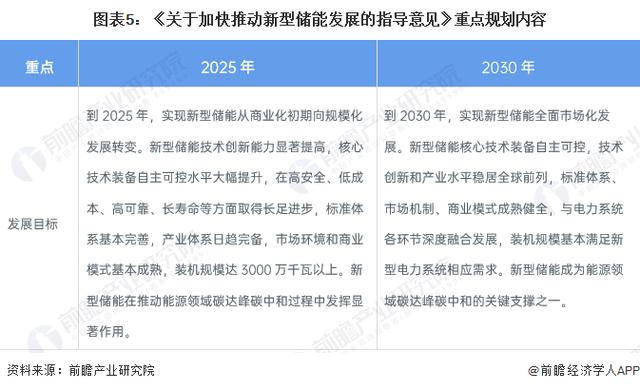 國家發(fā)展改革委、國家能源局聯(lián)合印發(fā)了《關(guān)于加快推動新型儲能發(fā)展的指導(dǎo)意見》,提出到2025年,實現(xiàn)新型儲能從商業(yè)化初期向規(guī)?;l(fā)展轉(zhuǎn)變。新型儲能技術(shù)創(chuàng)新能力顯著提高,核心技術(shù)裝備自主可控水平大幅提升,在高安全、低成本、高可靠、長壽命等方面取得長足進步,標(biāo)準(zhǔn)體系基本完善,產(chǎn)業(yè)體系日趨完備,市場環(huán)境和商業(yè)模式基本成熟,裝機規(guī)模達3000萬千瓦以上。到2030年,實現(xiàn)新型儲能全面市場化發(fā)展。新型儲能核心技術(shù)裝備自主可控,技術(shù)創(chuàng)新和產(chǎn)業(yè)水平穩(wěn)居全球前列,標(biāo)準(zhǔn)體系、市場機制、商業(yè)模式成熟健全,與電力系統(tǒng)各環(huán)節(jié)深度融合發(fā)展,裝機規(guī)?;緷M足新型電力系統(tǒng)相應(yīng)需求。新型儲能在推動能源領(lǐng)域碳達峰、碳中和過程中發(fā)揮顯著作用。新型儲能成為能源領(lǐng)域碳達峰、碳中和的關(guān)鍵支撐之一。