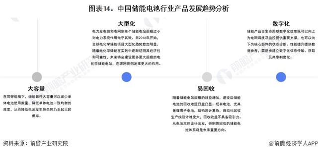 隨著中國儲能電池行業(yè)的快速發(fā)展,大容量、大型化、易回收和數(shù)字化將成為儲能電池主要的發(fā)展方向。在大容量方面,同等規(guī)模下儲能器件的大容量可以減少單體電池使用數(shù)量,降低單體電池一致均衡的難度,從而降低電池發(fā)生熱失控乃至起火的概率;在大型化方面,大型化是配置靈活的電化學(xué)儲能技術(shù)在電力系統(tǒng)中發(fā)揮主導(dǎo)的作用的必經(jīng)之路;在易回收方面,研制易回收的儲能電池體系,使回收收益具備吸引力是未來發(fā)展大方向;在數(shù)字化方面,儲能產(chǎn)品全生命周期數(shù)字化信息既可以向上為電網(wǎng)調(diào)度及監(jiān)控提供重要支撐,也可以向下為核心部件的狀態(tài)診斷、性能提升提供數(shù)據(jù)參考。