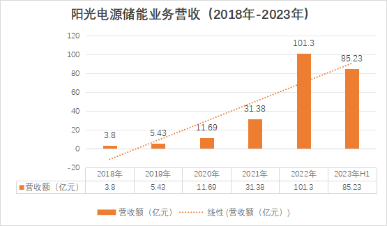 除了出貨量之外,業(yè)績,也是一面鏡子,它是公司過往戰(zhàn)略的倒影。儲能營收的飛速增長,無疑也印證了陽光電源儲能布局和戰(zhàn)略定位的成功。2023年4月25日,陽光電源披露2022年年度報告,其儲能系統(tǒng)營收實現(xiàn)101.26億,首次破百億。2023年半年報顯示,僅半年其儲能營收已經(jīng)高達(dá)85.23億。