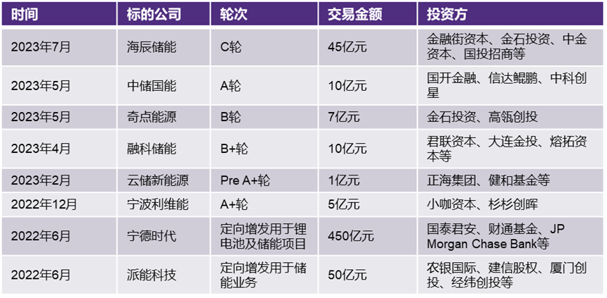 國內(nèi)儲能行業(yè)融資情況