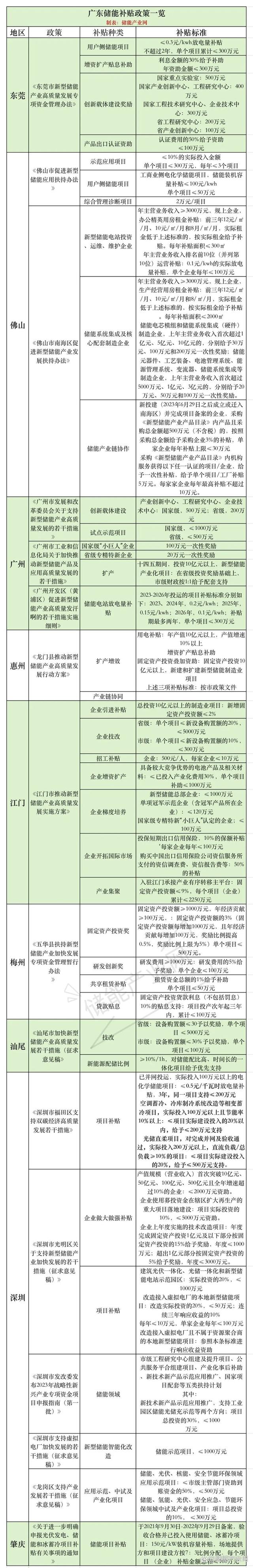 近日,廣東廣州市黃埔區(qū)、深圳龍崗兩區(qū)出臺了有關儲能的支持政策。隨著這兩地的支持政策出臺,2023年以來,廣東省內(nèi)已有近10個市區(qū)縣級政府出臺了儲能獎補政策。