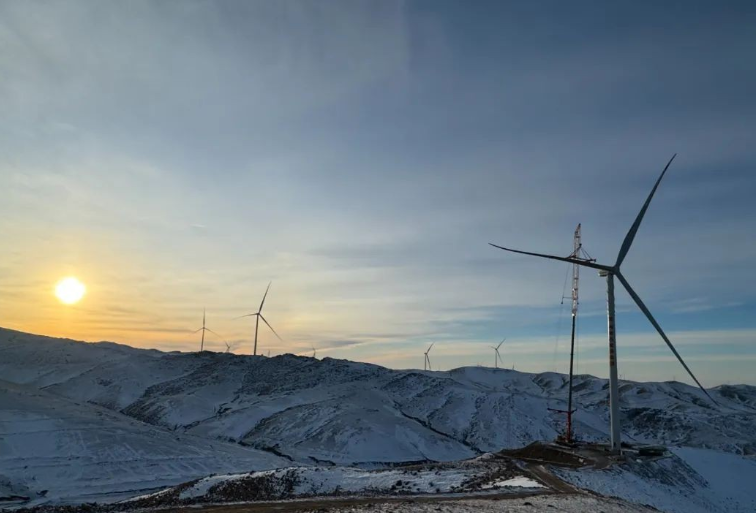 四子王旗100萬(wàn)千瓦風(fēng)儲(chǔ)項(xiàng)目是內(nèi)蒙古能源集團(tuán)公司“670”新能源項(xiàng)目中唯一的“山地風(fēng)電”,134臺(tái)風(fēng)機(jī)全部分布在山頂或山脊,場(chǎng)址占地約453平方公里,南北最大跨度約45公里,東西最大跨度約51公里。項(xiàng)目現(xiàn)場(chǎng)地形起伏、高差較大,冬季風(fēng)雪疊加,極寒天氣頻繁,給大型設(shè)備運(yùn)輸和風(fēng)機(jī)吊裝作業(yè)等制造了諸多難題。
