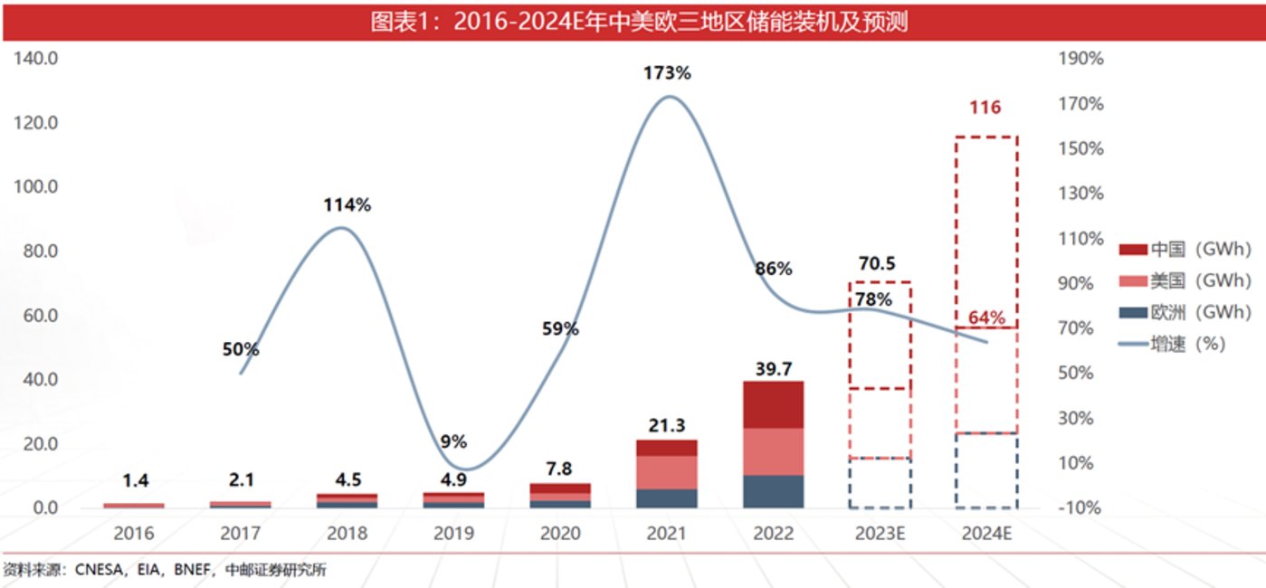 需求端,意外頻出。國(guó)內(nèi),強(qiáng)制配儲(chǔ)政策在落地過(guò)程中,有所放松;美國(guó),高利率降低了儲(chǔ)能的經(jīng)濟(jì)性,不少儲(chǔ)能項(xiàng)目大幅延遲。歐洲,戰(zhàn)爭(zhēng)影響減弱,電力價(jià)格回落,儲(chǔ)能需求降低;尤其在2022年,歐洲經(jīng)銷商們囤積了大量庫(kù)存,新增訂單意愿減弱。