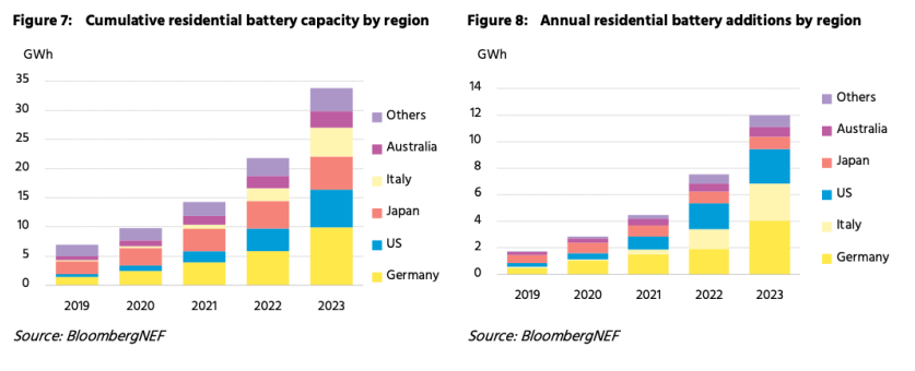 圖1:BNEF累計戶用儲能預(yù)期 圖2:2023年太陽能電池安裝率,選定市場