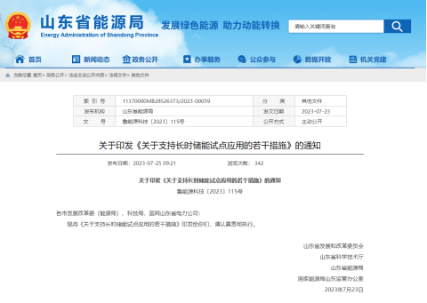 2023年7月,山東省出臺《關(guān)于支持長時儲能試點應(yīng)用的若干措施》,要求試點項目規(guī)模不低于10萬千瓦,滿功率放電時長不低于4小時,這是國內(nèi)首個支持長時儲能發(fā)展的地方性專項政策,長時儲能可享受優(yōu)先接入電網(wǎng)、優(yōu)先租賃、容量補(bǔ)償標(biāo)準(zhǔn)提高、減免輸配電價等優(yōu)惠政策。