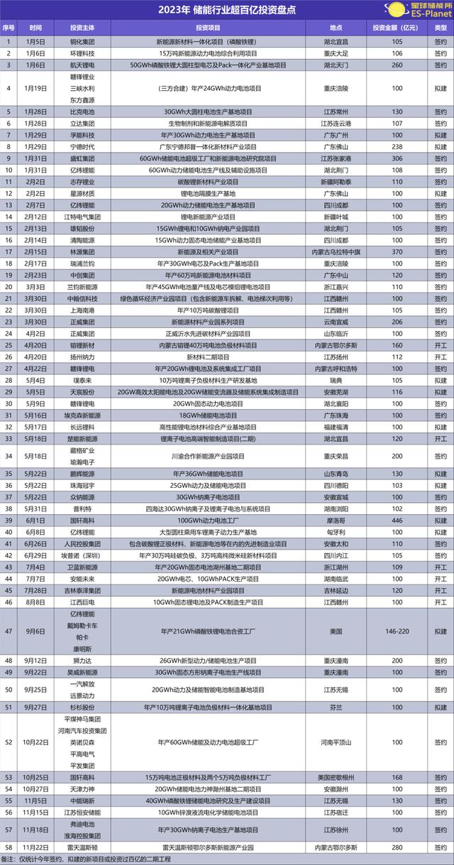 ※ 圖表:2023年度 儲(chǔ)能行業(yè)超百億投資盤點(diǎn) 來源:星球儲(chǔ)能所
