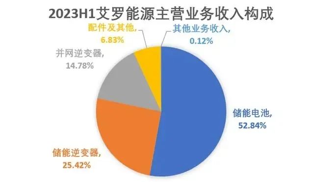 根據招股書披露,艾羅能源的主營業(yè)務結構如下圖所示,2023年1-6月公司各項產品中儲能逆變器收入占比25.42%;儲能電池收入占比52.84%,并網逆變器收入占比14.78%,配件及其他收入占比6.83%。