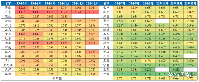 2023年下半年國內(nèi)各省月度峰谷價(jià)差統(tǒng)
