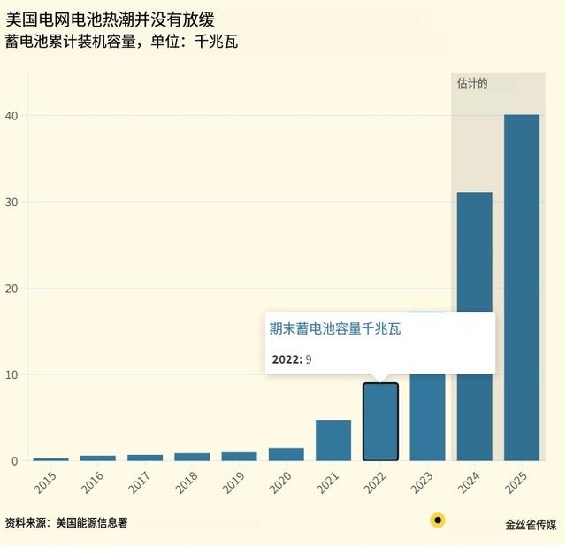 據(jù)美國能源信息署統(tǒng)計,2023年末,美國電網(wǎng)安裝的電池儲能裝機(jī)總量,已達(dá)到驚人的17.3GW。這個數(shù)據(jù),比2022年底時的9GW增長了近一倍!