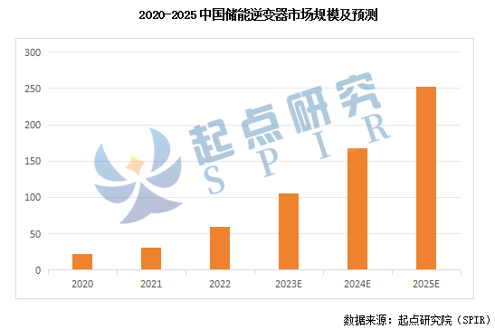 近年來,我國儲能市場呈現(xiàn)出高速增長態(tài)勢(國家能源局數(shù)據(jù),2023年上半年國內(nèi)新型儲能新增裝機8.63GW/17.72GWh,接近歷年累計裝機總和),催生對于儲能逆變器的巨大需求,儲能逆變器市場前景廣闊。據(jù)起點研究院(SPIR)數(shù)據(jù)和預(yù)測,2022年中國儲能逆變器市場規(guī)模達60億元,2023年將達105億元,同比增速達75%,預(yù)測到2025年達252億。