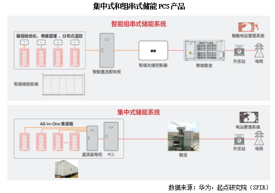 儲能PCS產(chǎn)品可以分為集中式、組串式、微型逆變器、儲能變流器及一體機等類型。根據(jù)儲能PCS的應(yīng)用場景可以分為組串式和集中式兩大類,其中組串式主要應(yīng)用于中小型儲能系統(tǒng),集中式應(yīng)用于大型儲能系統(tǒng),產(chǎn)品形態(tài)適應(yīng)源/網(wǎng)/荷側(cè)多種場景。不同應(yīng)用場景對于儲能PCS的功能以及性能參數(shù)等的需求差異較大,因此針對不同的場景需要應(yīng)用不同技術(shù)類型的儲能PCS。