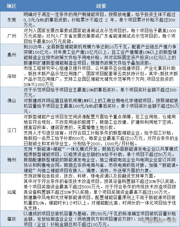 其實,不止是東莞,廣州、惠州、深圳、佛山、江門、梅州、汕尾、肇慶在推動儲能發(fā)展上都下足了功夫。
